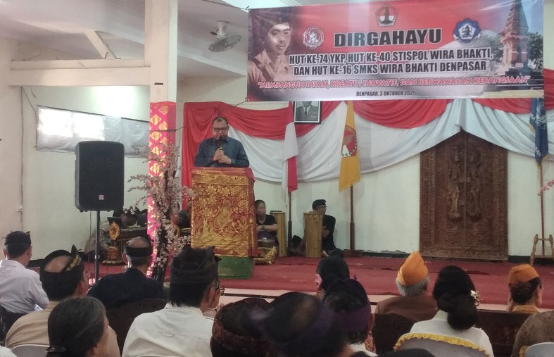 Denpasar – Gubernur Bali Wayan Koster menegaskan dukungan penuh Pemprov Bali terhadap Yayasan Kebaktian Proklamasi (YKP) yang berperan menanamkan nilai kebangsaan melalui pendidikan. Pernyataan tersebut disampaikan melalui Kepala Badan Kesatuan Bangsa dan Politik (Kesbangpol) Provinsi Bali, Gede Suralaga, pada peringatan HUT ke-74 YKP, bersamaan dengan HUT ke-40 Stispol Wira Bhakti, HUT ke-16 SMKS Wira Bhakti, Jumat (3/10).
